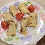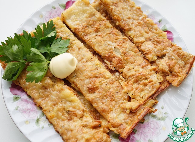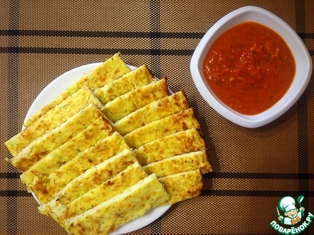 Готовую закуску разрезать на палочки и подавать с любимым соусом. У меня домашняя аджика.