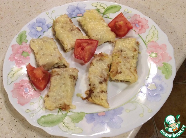 Вкусная и простая в приготовлении закуска, к тому же, что немаловажно, палочки запекаются, а не жарятся. Мои домочадцы выхватывали из-под рук еще горячие палочки, пока фотографировала, уже ничего не осталось.