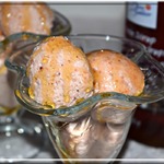 Я делала 2 десерта по 350 мл и остальное мороженое - приблизительно 250-300 мл.