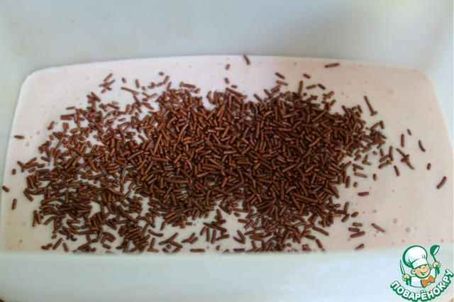 Выливаем часть массы в форму, посыпаем шоколадной стружкой по вкусу, перемешиваем и ставим в морозилку - у меня стояло 5 часов.
