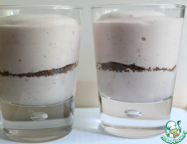 Остальную часть раскладываем в два бокала, пересыпая шоколадной стружкой.