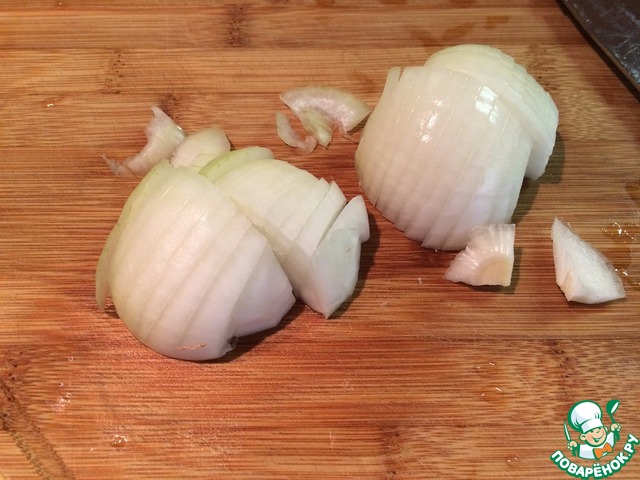 Чистим и режем лук.