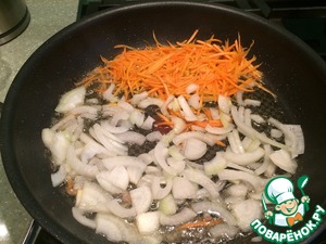 Морковь натираем на терке и начинаем обжаривать.