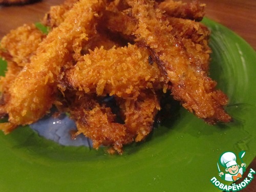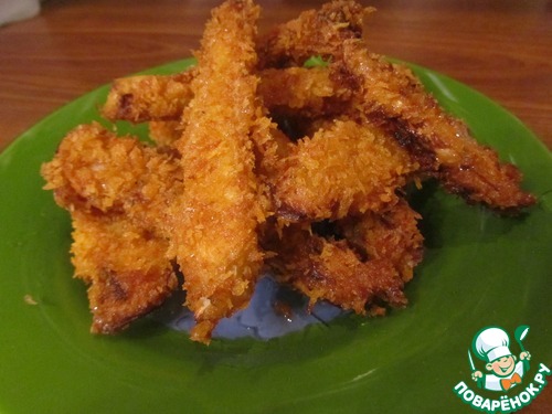 Брусочки кольраби опустить в кляр, затем обвалять в панировочных хлопьях. (я брала хлопья для темпура)