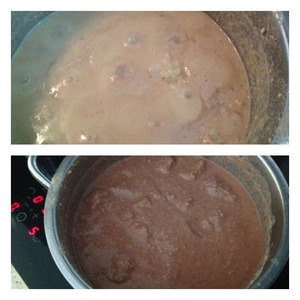 Орехи прокрутить через мясорубку, добавить к мясу. Быстро перемешать, добавить полстакана воды. Огонь уменьшить и варить минут 10. -