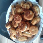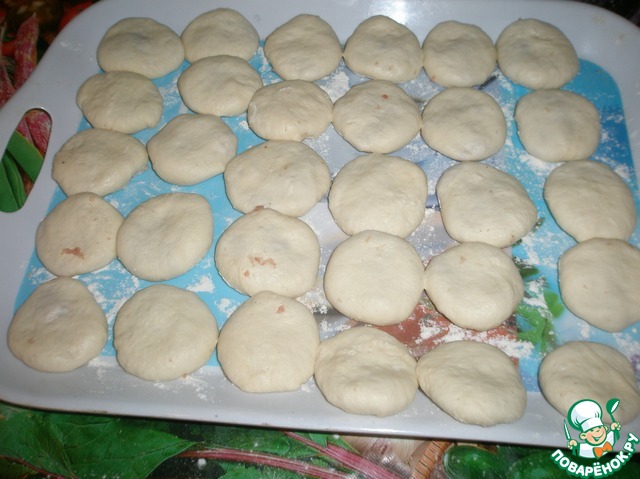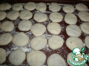 Выкладываем на противень, посыпанный немного мукой. Они сразу же начинают подходить.