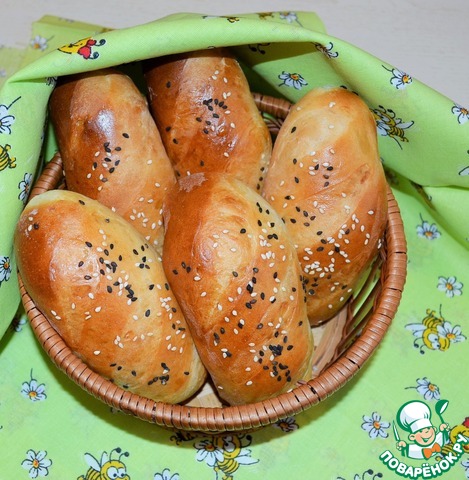 Перед посадкой в духовку батончики смазать взбитым яйцом (я еще добавляю чайную ложку молока). Выпекать 15-20 минут (в любом случае ориентироваться на свои духовки), но сильно не зажаривать.