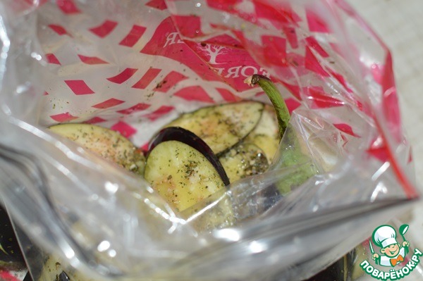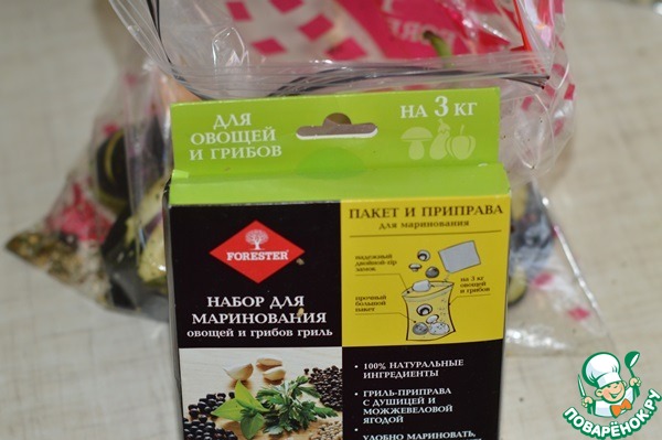 1. Баклажан нарезать произвольно кружками. Специи Forester смешать с маслом и лимонным соком. В пакет для маринования Forester выложить баклажаны и специи.