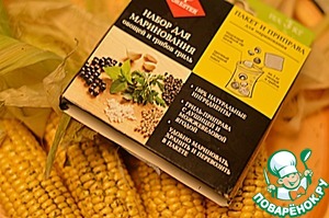 • 1. Кукурузу не очищая от листьев замочить на 15 минут в холодной воде. Специи Forester для овощей и грибов смешать с маслом. У початка аккуратно "отвернуть" листья, не отрывая их. Хорошо смазать кукурузу специями. Завернуть листья обратно.