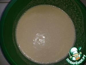 Яйца с сахаром взбить миксером в крепкую пену. От себя могу сказать, что если крепкой пены ну не получилось... у вас, не беда, получается и без "пиков".