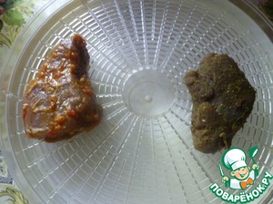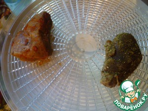 Я пришла к выводу,что для такой экспресс-сушки мяса лучше использовать маринование, чем обвалку в специях, потому что они при сушке не успевают отдать свой аромат мясу, остаются просто пряной оболочкой. А вот маринад как раз-таки оставит внутри него все вкусности после испарения влаги и это будет то, что надо!