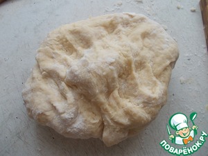 Растопим маргарин, остудим и добавим вместе с мукой в нашу опару. Замешиваем однородное, эластичное тесто. Оставим в теплом месте.