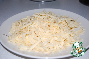 Лук нашинковать, обжарить на оливковом масле. Сыр натереть.