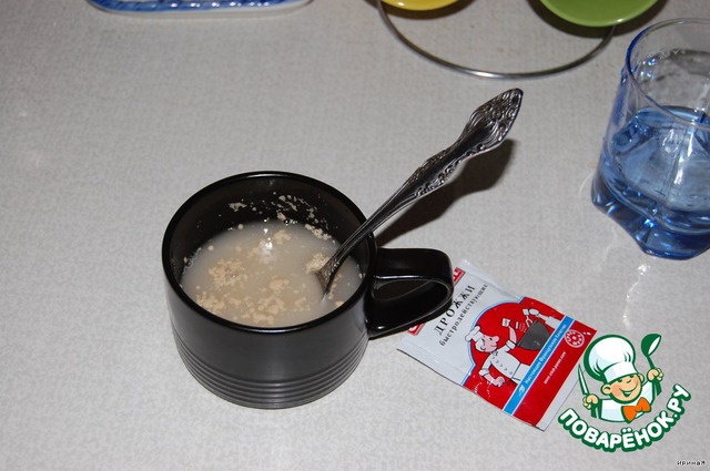- Вода (тёплая сладкая) — 1/2 стак.