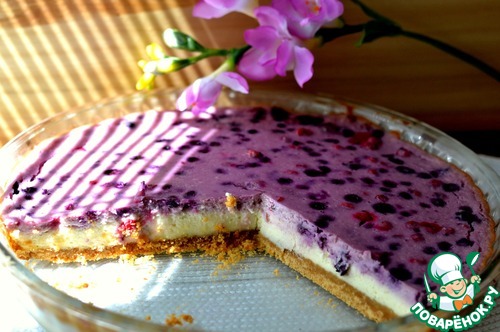 По истечении 35 минут, вытаскиваем пирог и выливаем ягодно-творожную смесь на верх.