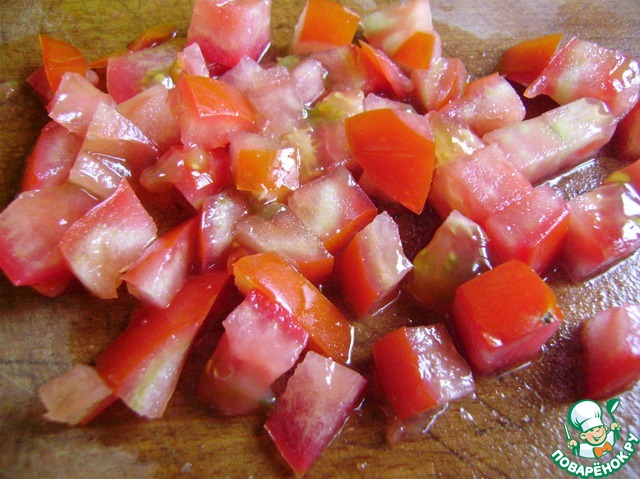 Помидоры нарезаем кубиками.