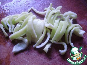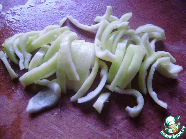 Болгарский перец нарезаем соломкой.