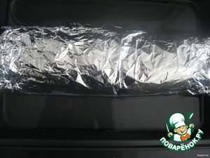 На смазанный раст.маслом лист фольги выложить половину рыбного фарша,разровнять.