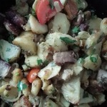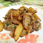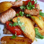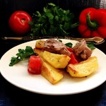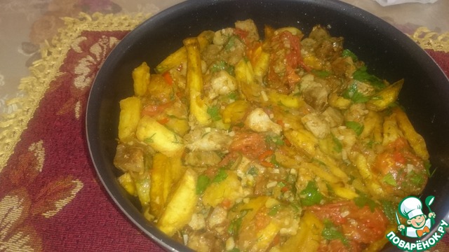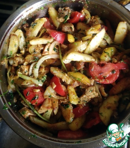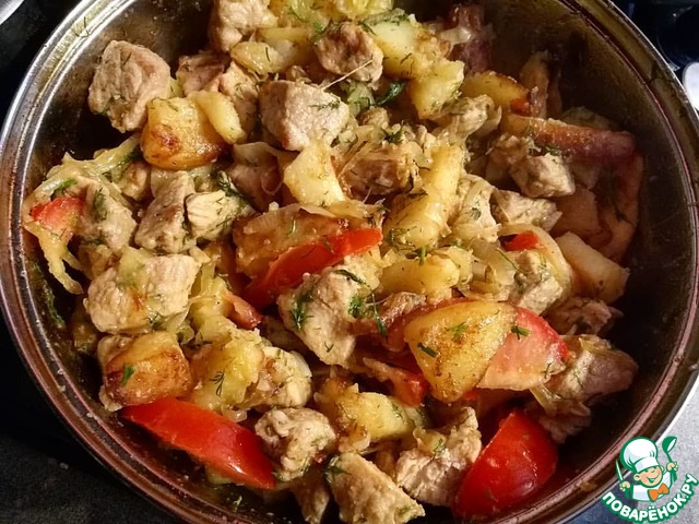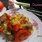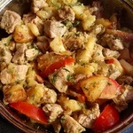 На сайте есть уже рецепт этого чудесного блюда, но мой немного отличается, поэтому спешу поделиться с Вами моим вариантом приготовления. Вдруг, кому то пригодится. Это замечательное, ароматное и очень сытное блюдо принадлежит Грузинской кухне. Чудесное сочетание Хмели-Сунели, свежей зелени, чеснока, картофеля и свинины, не оставят Вас равнодушными. Итак, прошу к столу!