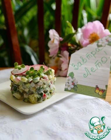 Очень легкий, нежный и невероятно свежий салатик! Простой, но, в то же время, изысканный. И даже на праздничном столе он не будет лишним.