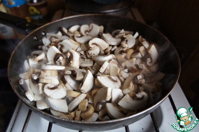 Затем грибы и лук.
