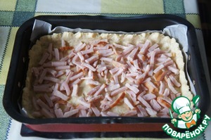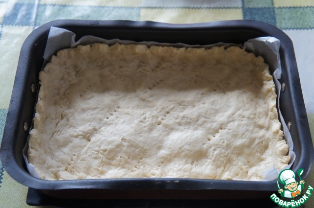 Тесто немного раскатать, уложить в форму и руками размять по всей поверхности, оформив бортик.