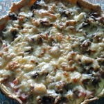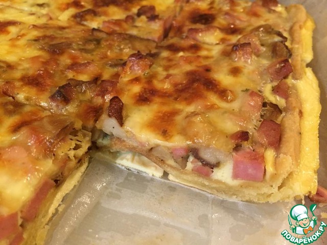 Киш лорен с шампиньонами и варено-копченым мясом. Пирог не сложен в приготовлении, но очень вкусный, ароматный... Порадовать мужа точно получится. Простите за не очень удачные фото, делала на даче, а там условия для съемки не самые лучшие.