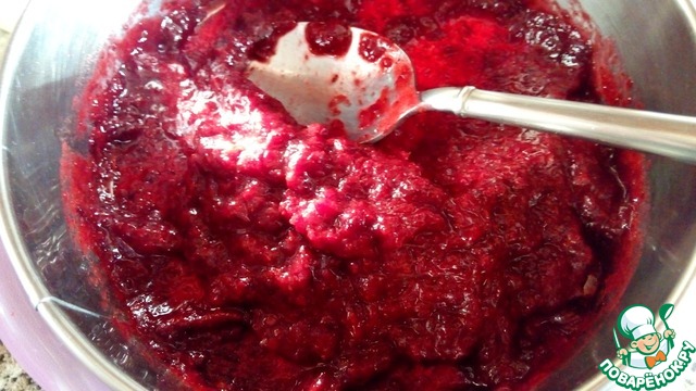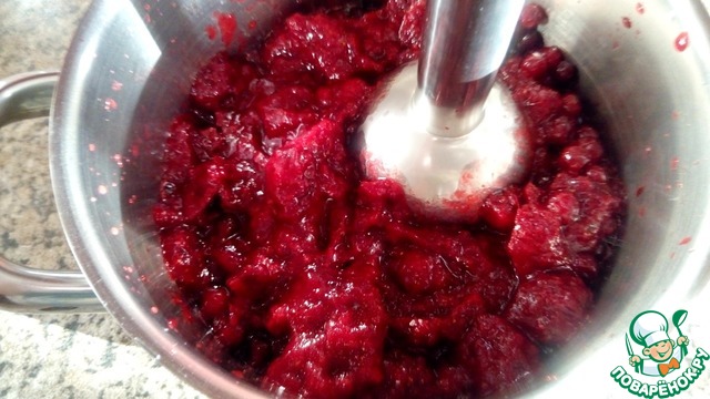 Пробить бруснику блендером.