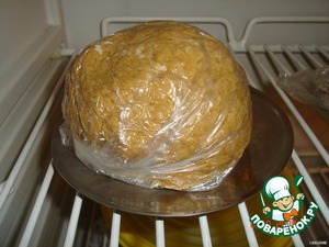 Взбить хорошо и, добавив в муку, быстро замесить тесто. Положить тесто в пакет и в холодильник на час.