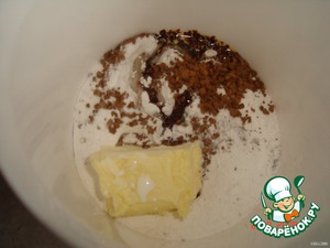 масло смешиваем с сах.пудрой + ч.л.кофе + ч.л.молока.