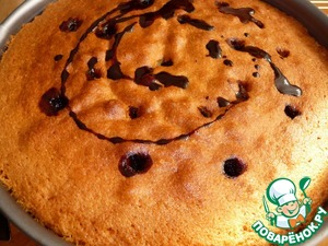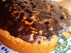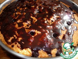 Дать пирогу остыть в форме 15мин. Спицей (автор сделала китайскими палочками) делаем дырочки и в них заливаем заливку. Заливать можно через воронку или кружкой с носиком. У меня спицы нет, взяла кондитерский шприц с узкой насадкой, ей делала углубления и наливала по 1ст. л. заливки. Можно заливать и больше.