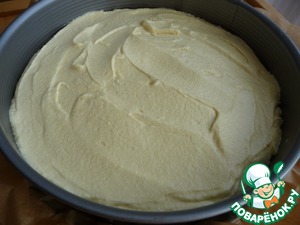 Духовку разогреть до 175С. Форму для выпечки (26см) застелить пекарской бумагой, выложить в нее тесто.