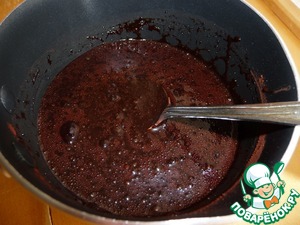 Готовим заливку. В небольшом кол-ве кипятка (от общего объема) развести какао-порошок, сахар, кофе, ром. Хорошо перемешать, чтобы не было комочков, добавить остатки кипятка и оставить остывать при комнатной температуре.