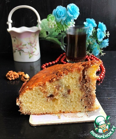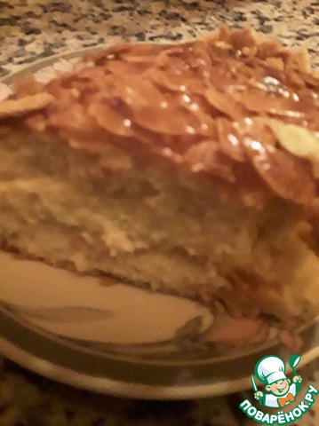 Тесто воздушное, нежное, но пропитка - супер! Я сначала проколола спицей, а пропитку вводила мед.шприцем, классно получилось! в структуре пирога такие кружочки, дети назвали "леопардовый пирог", правда, получилось похоже