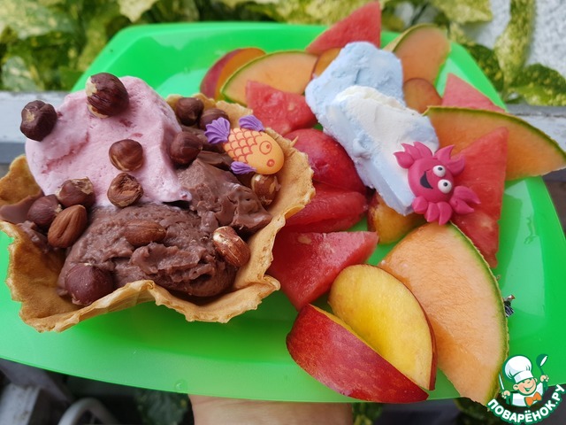 Рецепт «Десерты из дыни, арбуза и суфле из шоколада»: