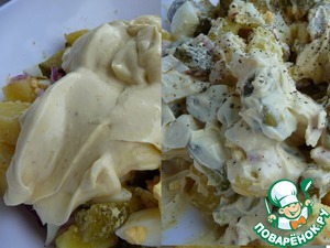 Для соуса смешать майонез и горчицу (она у меня с приправами, деликатесная).
