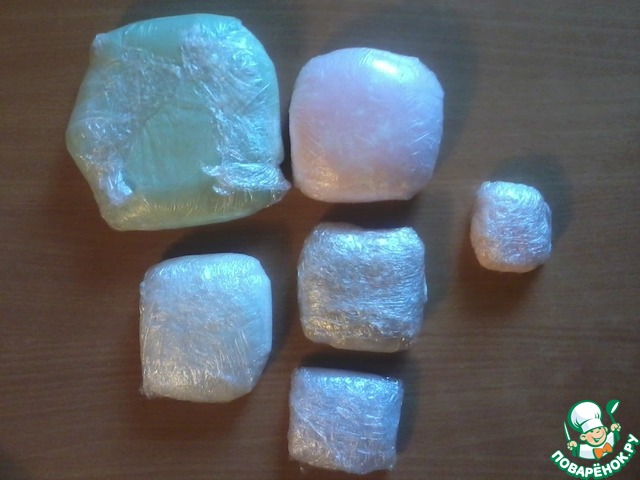 После этого мастику надо поместить либо в полиэтиленовый пакет, либо в пищевую пленку, плотно завернуть (чтобы не было воздуха в пакете/пленке) и положить в холодильник