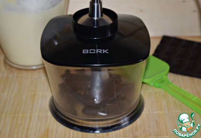 Измельчить шоколад в блендере в крошку. (или натереть на крупной тёрке)