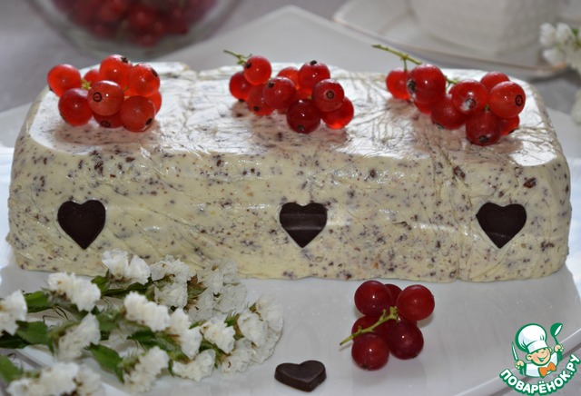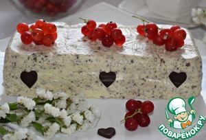Десерт вынуть за 15-20 минут до подачи из морозильной камеры, чтобы он слегка оттаял. Вынуть десерт из формы, снять плёнку, украсить по желанию.