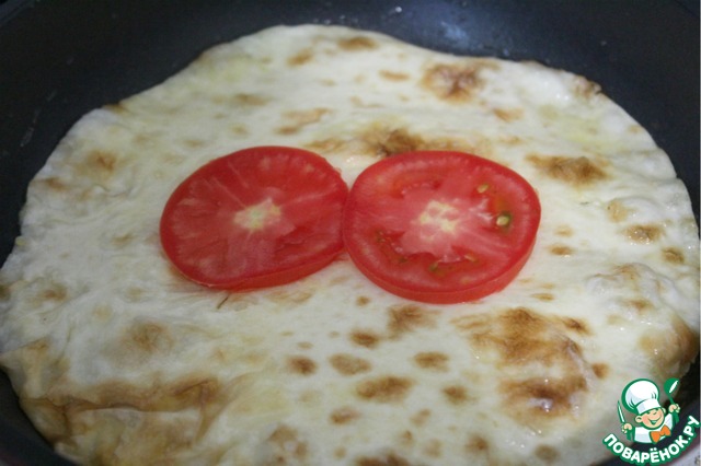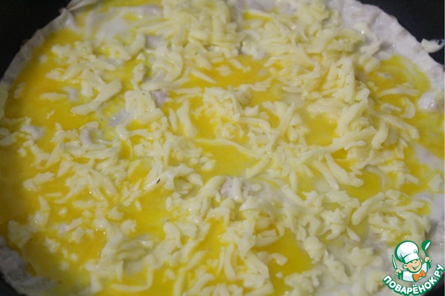 Как только яйцо прихватится, а сыр немного расплавится, лопаточкой переворачиваем лаваш на другую сторону - переворачивается без проблем.