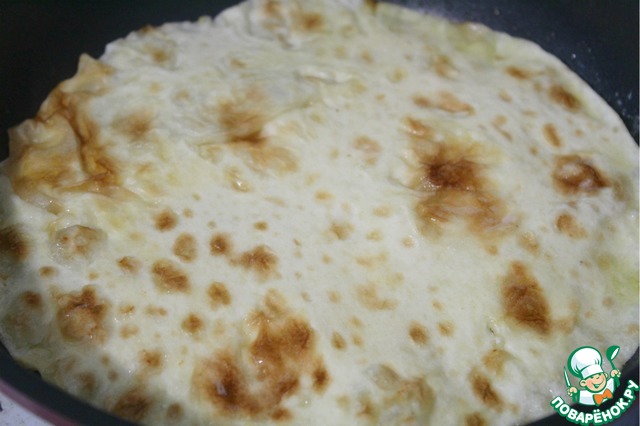 Разрезать лаваш по размеру диаметра сковороды, на которой будете печь-возьмите сковороду пошире. -