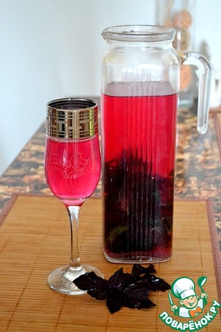 Базилик помыть и сложить в кувшин. Залить кипятком. Дать постоять минут 20. Вода окрасится в темно-фиолетовый цвет.