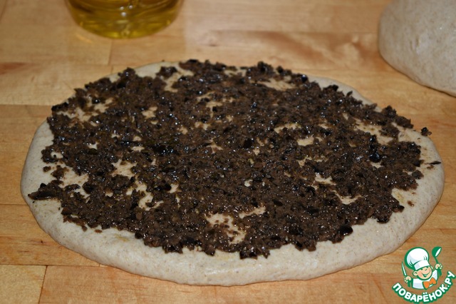 - Масло оливковое (2 ст. л. в тесто, 2 ст. л. в оливковую пасту) — 4 ст. л.