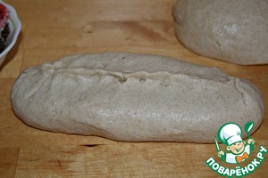 Через час хлеб отлично подошёл. Острым ножом сделать продольные надрезы.