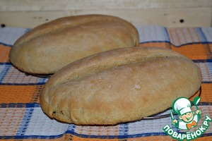 Разогреть духовку до 200 градусов. Сбрызнуть стенки духовки водой из пульверизатора и выпекать хлеб 20-25 минут до румяной корочки. Готовый хлеб остудить хлеб на решётке.
