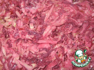 Капусту нашинковать, посыпать солью, размять.