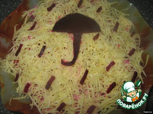 Сверху посыпать тертым сыром и украсить кусочками свеклы.