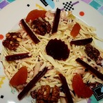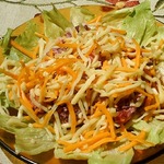 Сочный овощной салатик с пикантным привкусом орехов и кураги под сырной "шапкой".