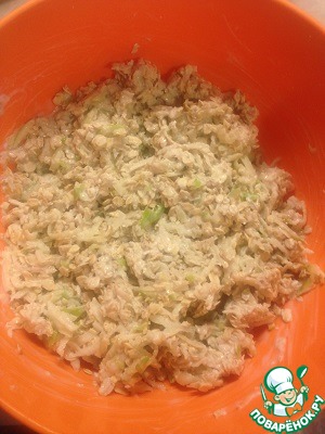 В миску высыпаем овсянку, выливаем кефир, перемешиваем. Яблоки трем на крупной терке вместе с кожурой. Добавляем корицу, разрыхлитель, заменитель сахара. Все хорошо перемешиваем и оставляем на 20 минут.