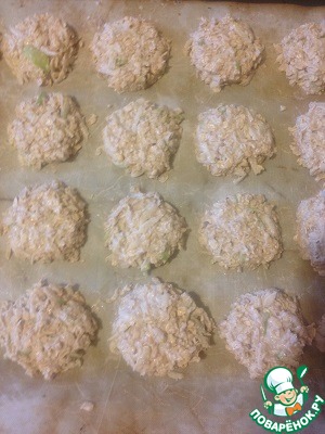 Затем ложкой выкладываем порции "теста" на противень и придаем печеньям круглую форму. Ставим в разогретую до 180 градусов духовку.